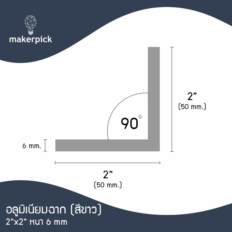 ฉากอลูมิเนียมเส้น 2"x2" หนา 6 มม. สีดำ แบ่งตัด 100 เซนติเมตร ฉากบานกระทุ้งข้อต่อ