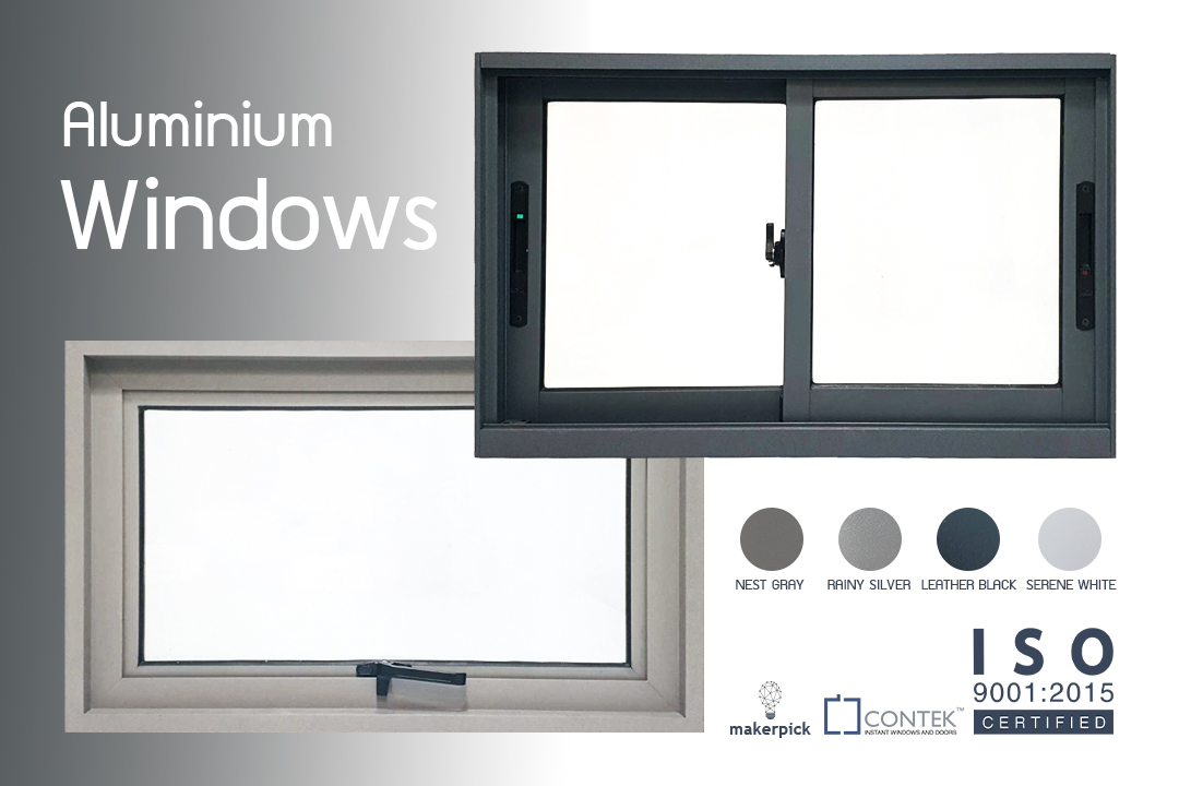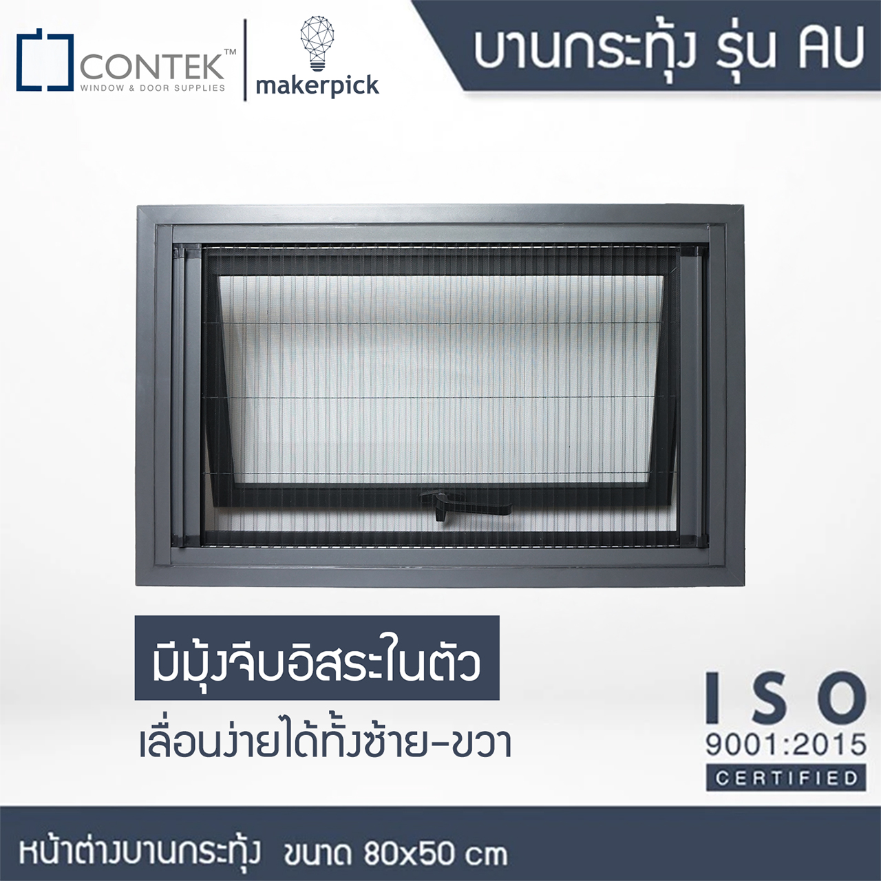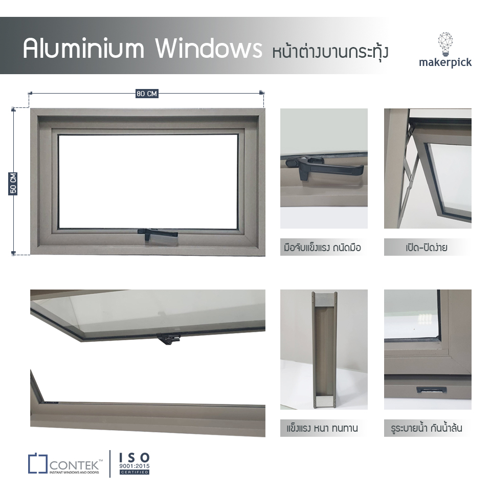 หน้าต่างบานกระทุ้ง กรอบอลูมิเนียม ขนาด กว้าง 80 x สูง 50 ซม. มีทั้งหมด 4 สี 1. NEST GRAY เทา 2. RAINY SILVER เทาประกายมุข